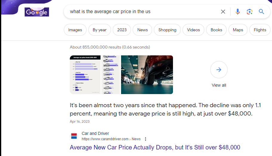 To get an understanding of what the car market really looks like, I did a little digging. Car & Driver states that on average, the new car price is still over $48000 as of March 2023.